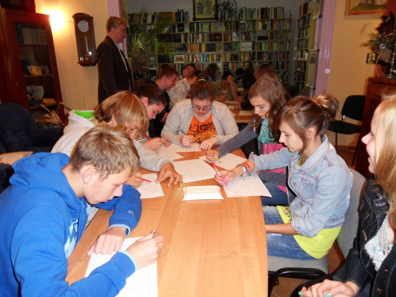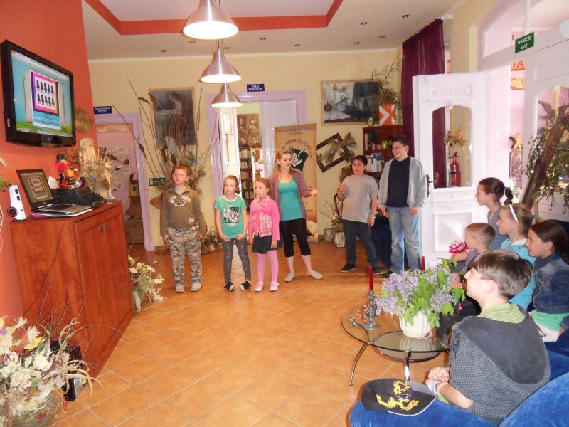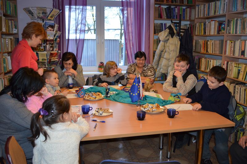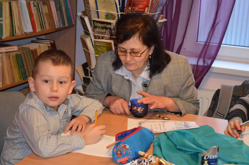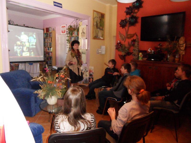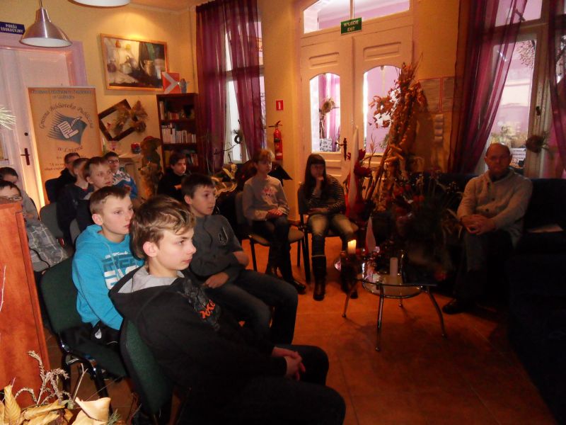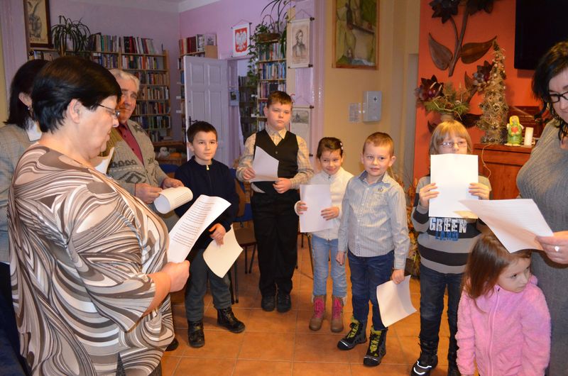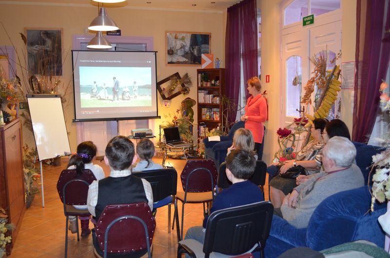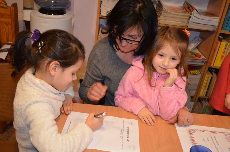 W bibliotece odbywają się zajęcia języka angielskiego dla dzieci i osób starszych, które przeprowadza Anna Bendlin-Mindykowska z Centrum Edukacji LIBRA. Grupa dzieci dnia 22 stycznia na swoje zajęcia przyszła z dziadkami i babciami, aby z okazji ich świąt (21 stycznia Dzień Babci, 22 stycznia Dzień Dziadka) wspólnie spędzić czas zajęć lekcyjnych w bibliotece. Dziadkowie i babcie oglądali z wnuczętami krótkie anglojęzyczne filmiki za pośrednictwem internetu, a do niektórych z nich wykonywali zabawy ruchowe. Kolejno odbyła się pogawędka. Dziadkowie i Babcie odpowiadali na pytania np.Your first pet (Twoje pierwsze zwierzę domowe), Your first job (pierwsza praca), What do you remember from the past (co pamiętasz z przeszłości), w których to odpowiedziach opowiadali ciekawe rzeczy i historie swego życia. Jubilaci udali się na poczęstunek, gdzie oddali się luźnym rozmowom, a wnuczęta w odrębnej sali przystąpiły do kolorowania laurek pod hasłami NAJLEPSZA BABCIA, NAJLEPSZY DZIADEK. Kolorowe prace wręczone ich gościom przyniosły wiele radości. Kolejno w grupach, w kontynuacji nauki języka angielskiego rozwiązywano krzyżówki, w której należało wpisywać różne angielskie słowa.