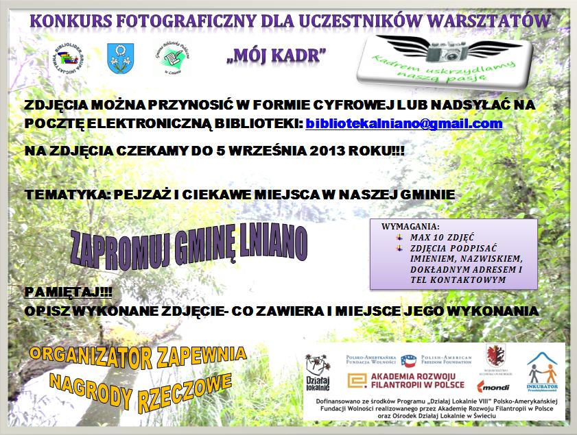Serdecznie dziękujemy za wszystkie dostarczone prace Zdjęcia zwycięzcy konkursu oraz osób wyróżnionych znajdą się w kalendarzu na rok 2014 wydanym w ramach projektu.