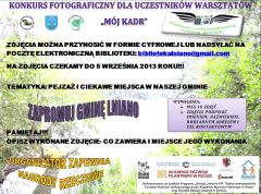 Skierowany do dzieci 2 grup wiekowych: Zgłoszenia do konkursu odbywają się poprzez wypełnienie karty zgłoszeniowej, którą należy złożyć w Gminnej Bibliotece Publicznej w Lnianie do 25 lutego 2013 r. Przesłuchania i ocena przez jury odbędzie się 2 marca 2013 r. o godzinie 10.00 w GBP Lniano.