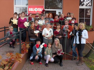 19.10.2012 r. - papieroplastyka - krepina Zajęcia z papieroplastyki, techniki filcowania, świąteczne kule decoupage oraz ostatnie malowanie obrazów technika decoupage odbywały się pod kierownictwem Anny Tomasik z Ośrodka Kultury Sportu i Rekreacji w Świeciu. Każdy uczestnik oprócz nabytej wiedzy otrzymał zaświadczenie uczestnictwa w zajęciach podpisane przez dyrektora biblioteki i trenerkę warsztatów.
