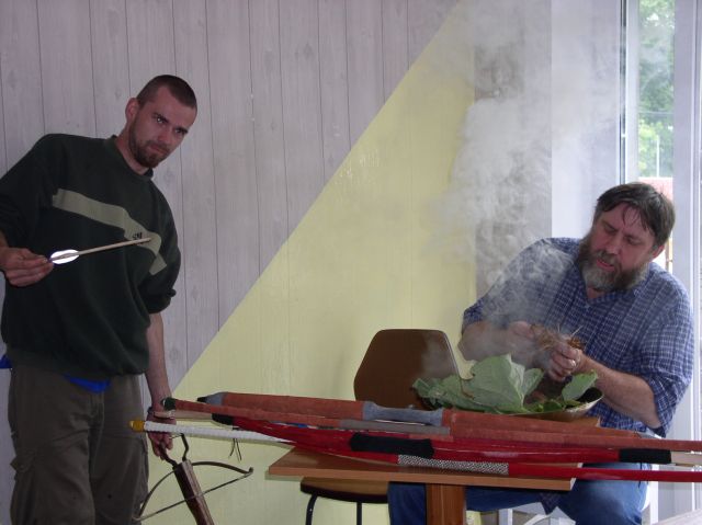 samego krzesania wykorzystując krzemień i hupkę. Dużą atrakcją były również prezentowane w trakcie pokazu różnego typu łuki,