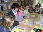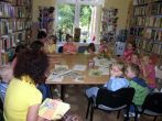 podkładu, dzieci bawiły się przed biblioteką. Na zajęciach nie