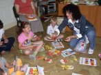 dzieci i opiekunowie wykańczali anioły z masy solnej. Najpierw