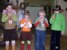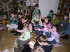 Świerszczyka pod hasłem „Ferie z książką”. Spotkanie obfitowało w przeróżne konkursy dla najmłodszych jak i opiekunów. Tradycyjnie honorowym gościem była Pani Wójt Zofia Topolińska, która przeczytała wiersze autorstwa Barbary Lewandowskiej. Dzieci zaprezentowały prace wykonywane na zajęciach, a tańcem i recytacją wierszy radośnie dziękowały Pani Wójt za przybycie. Barwne stroje uczestników i przebrania w postacie bajkowe przyniosły sporo radości. Przeprowadzono wiele konkursów, tak, że każdy w czymś wziął udział. Nagrody główne i pocieszenia to nie jedyne niespodzianki dnia, każdy za udział w zajęciach otrzymał dyplom świerszcza i upominki. Zabawę zakończono pamiątkowymi zdjęciami i zapaleniem zimnych ogni przed wejściem do biblioteki, było to również symboliczne pożegnanie karnawału.