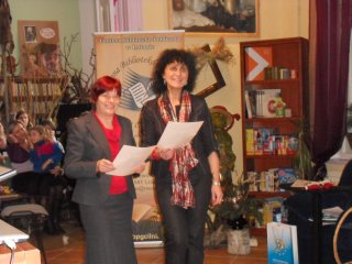 Z racji roku jubileuszowego 60lecia powstania placówki, omówiono jak funkcjonuje placówka, jakie istnieją w niej działy i jakie usługi się w nich wykonuje. Podsumowano całoroczna działalność z podkreśleniem co udało się zrealizować wg powstałej tego roku strategii rozwoju. Streszczono realizowane programy i jakie korzyści przyniosły one bibliotece. Była to także okazja do wręczania podziękowań. Pani Iwona Cynarzewska z pomocą sekretarza Gminy Lniano Pani Hanny Sucharskiej złożyła wyrazy wdzięczności za wsparcie i okazała pomoc wykonawcom projektu „Modernizacja i remont budynku oraz zakup wyposażenia dla Gminnej Biblioteki Publicznej w Lnianie” oraz osobom i instytucjom z projektem związanymi. Na to