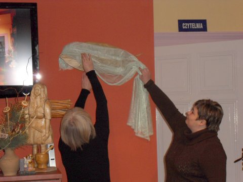 gości znajdowały się takie osoby jak Od zaproszonych gości biblioteka otrzymała kilka podarków m.in. zestaw audiobooków od przedstawicieli WiMBP w Bydgoszczy do nowo powstałego saloniku słowa. Podczas całego spotkania na wiszącym w saloniku słowa ekranie prezentowane były wszystkie zdjęcia z prac remontowych, od wyburzania do strojenia w klimacie świątecznym, a w altanie dostępna była wystawa przedstawiająca wygląd biblioteki w porównaniu przed i po remoncie. Zobacz galerię biblioteki przed remontem i po W dniu, w którym odbyło się spotkanie przybywającym do biblioteki użytkownikom wręczano świątecznego piernika zapakowanego z siankiem, a do 31 grudnia osoby nas odwiedzające wpisują się w księgę pamiątkową dzieląc się wrażeniami "nową" biblioteką. |