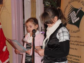 opowiadanie napisane przez lokalnych artystów. Po części artystycznej przyszedł czas na wręczenie nagród w całorocznym konkursie czytelniczym. Tutaj czwórka dzieci z Klubu Świerszczyka działającego przy bibliotece zarecytowała krótki wiersz o świerszczu.