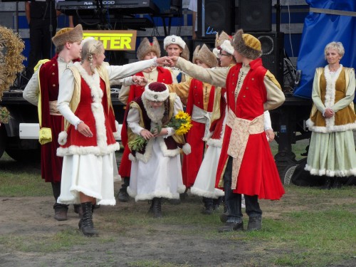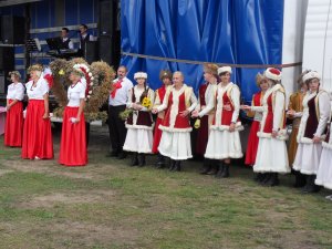 gospodarzy tegorocznych dożynek - Sołectwo Brzemiona. Gospodarze ubrani w