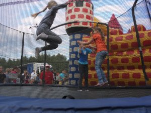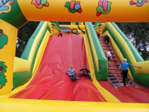 zamek ze zjeżdżalnią, basen z piłkami czy trampolina.