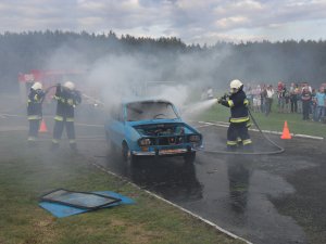 Niesamowitych atrakcji dostarczyli również strażacy z OSP Lniano. Pokaz gaśniczy, grupowego podchodzenia do ognia, oraz najbardziej efektowne ratowanie ofiary wypadku samochodowego. W tym celu specjalnymi urządzeniami cięto auto, otwierano dach i wyciągano poszkodowanego z podejrzeniem urazu kręgosłupa. Po udzieleniu pierwszej pomocy, auto stanęło w płomieniach, po czym strażacy przystąpili do gaszenia.