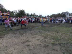 Drugim ważniejszym konkursem dla sołectw było zbijanie balonu cepem. W tej