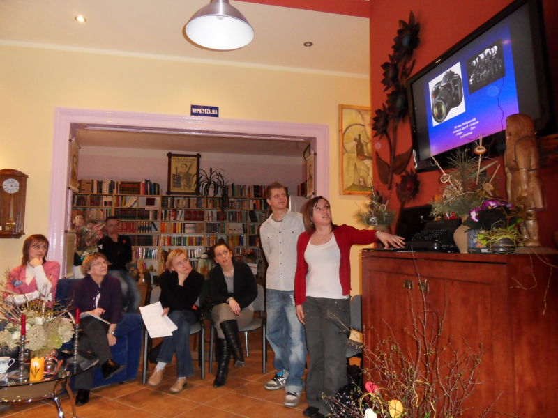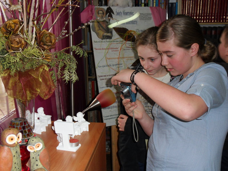 zajęciach tematyką. Dla urozmaicenia zdjęć do dyspozycji były książki i wystawowe elementy biblioteki. Na zakończenie omówione zostały zdjęcia wykonywane na poprzednich zajęciach. Zwrócono uwagę na zastosowane techniki, pomysły, nie zapominając również o zwróceniu uwagi na błędy. |