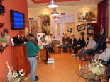 W trakcie spotkania, na wiszącym w Saloniku słowa telewizorze prezentowane były prace fotograficzne naszych lokalnych artystów Moniki Dembek, Barbary Witkowskiej i Bartosza Ryszkowskiego, którzy związani są z mająca nastąpić realizacją projektu "Fotoczytanie". Zaprezentowano także nowe nabytki biblioteki w postaci najstarszych książek sięgających lat sprzed 1900 r.