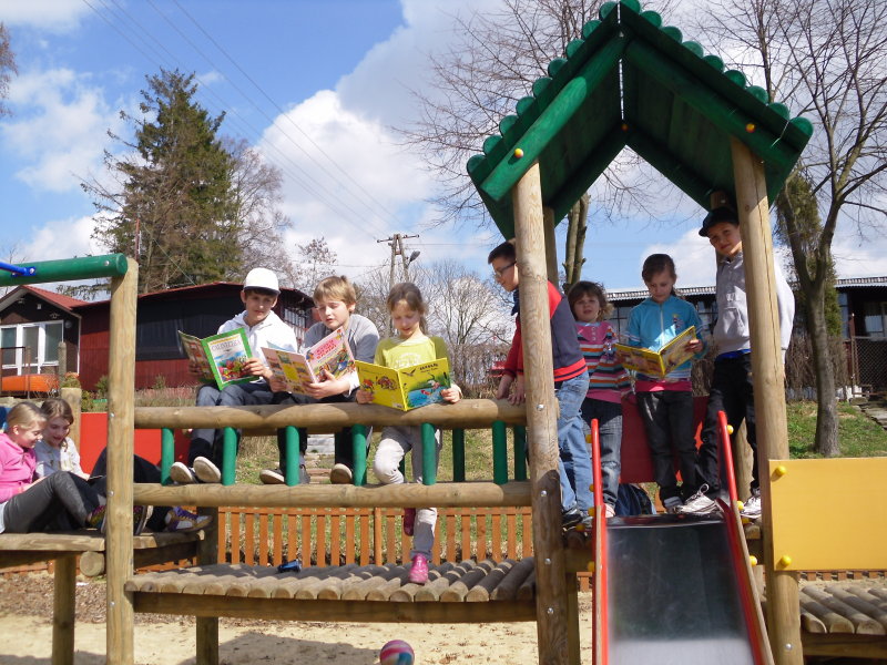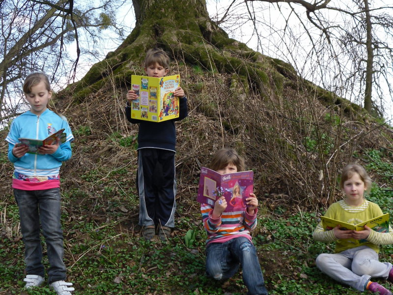 Świetlice wiejskie poważnie potraktowały konkurs. Jedne z zajęć zostały poświęcone właśnie tematyce fotografii. Aparaty poszły w ruch i pierwsza wspólna seria zdjęć została wykonana. Budząca się z zimowego snu natura i dzieci czytające książki - bo o to właśnie chodzi w "Wiosna czyta". |