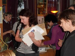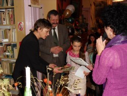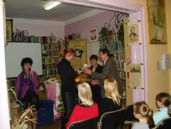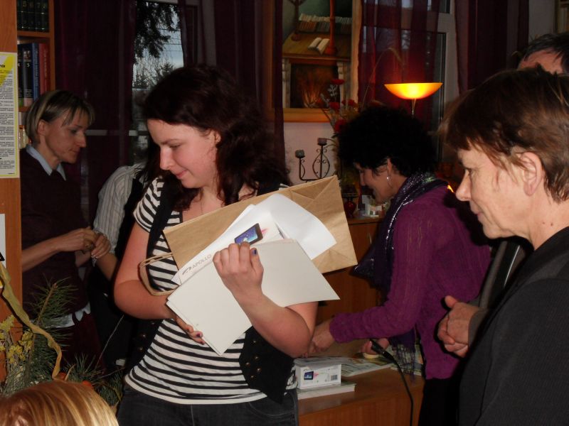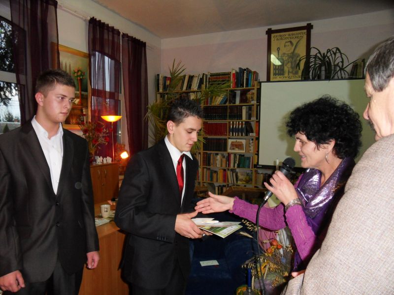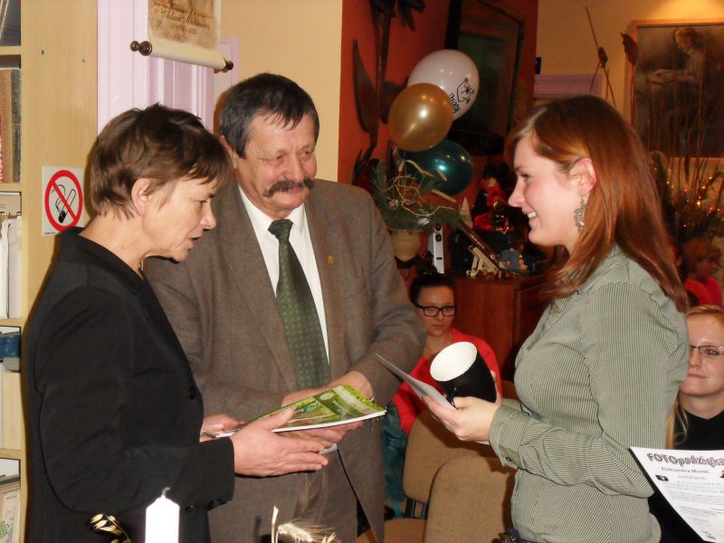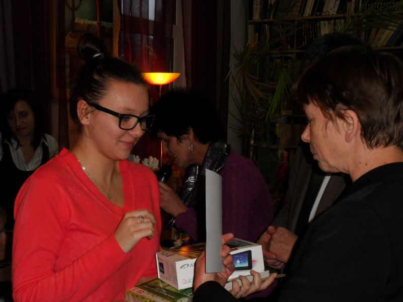 Po części artystycznej Zofia Topolińska wójt Gminy Lniano oraz Zdzisław Plewa prezes Stowarzyszenia Wspierania Rozwoju Gospodarczego Ziemi Świeckiej "Inkubator Przedsiębiorczości" wręczyli nagrody laureatom konkursu fotograficznego pt. "Jesień czyta", który realizowany był właśnie w ramach projektu "Fotoczytanie-Bis". Nagrodzono łącznie 65osób! Najlepszym 6 osobom wręczono tablety multimedialne, 9 osób otrzymało pendrive 8GB, pozostała 50 otrzymała upominki w postaci kubków z logiem Działaj Lokalnie VII. Każdy z laureatów otrzymał również dyplom pamiątkowy oraz komplet publikacji tj. kalendarz na 2013 r. oraz 4 rodzaje kartek pocztowych.